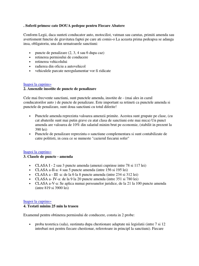 A) conducerea unui autovehicul sub influenţa băuturilor alcoolice, având o îmbibaţie sub 0,8 g/l alcool 991. Intreb pentru o ruda apropiata care tocma' a fost penalizat pentru centura si, din cate isi aminteste asa este, dar eu pun discutie cazurile in care nu semneaza destinatarul, in fapt se face retur (adica ce sancțiuni se aplica pentru conducerea unui autoturism cu transmisie manuala cu un permis cat.b. Penalizare pe puncte • 2 puncte pentru: Puncte de penalizare pentru greșeli și încălcări la proba poligon Pentru care dintre faptele de mai jos se aplică sancţiuni contravenţionale?