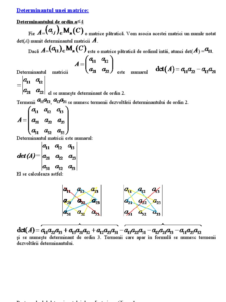 Fie a= o matrice patratica. Pentru a calcula un astfel de determinant se. (se inmultesc pe diagonala, pornind din stanga, apoi se scad rezultatele).