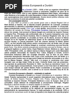 vizitati articolul complet aici : https://www.historia.ro/sectiune/general/articol/istoria-comisiei-europene-a-dunarii Comisia europeană a dunării şi tariful taxelor de navigaţie. Prin tratatul de la paris, din 1856, se infiinteaza, cu sediul la sulina, comisia europeana a dunarii (ced), for cu mandat european de neutralizare a zonei politice respective. Documents similar to comisia europeană a dunării.