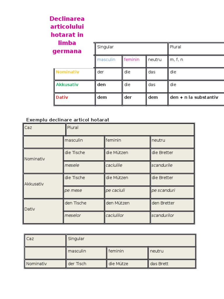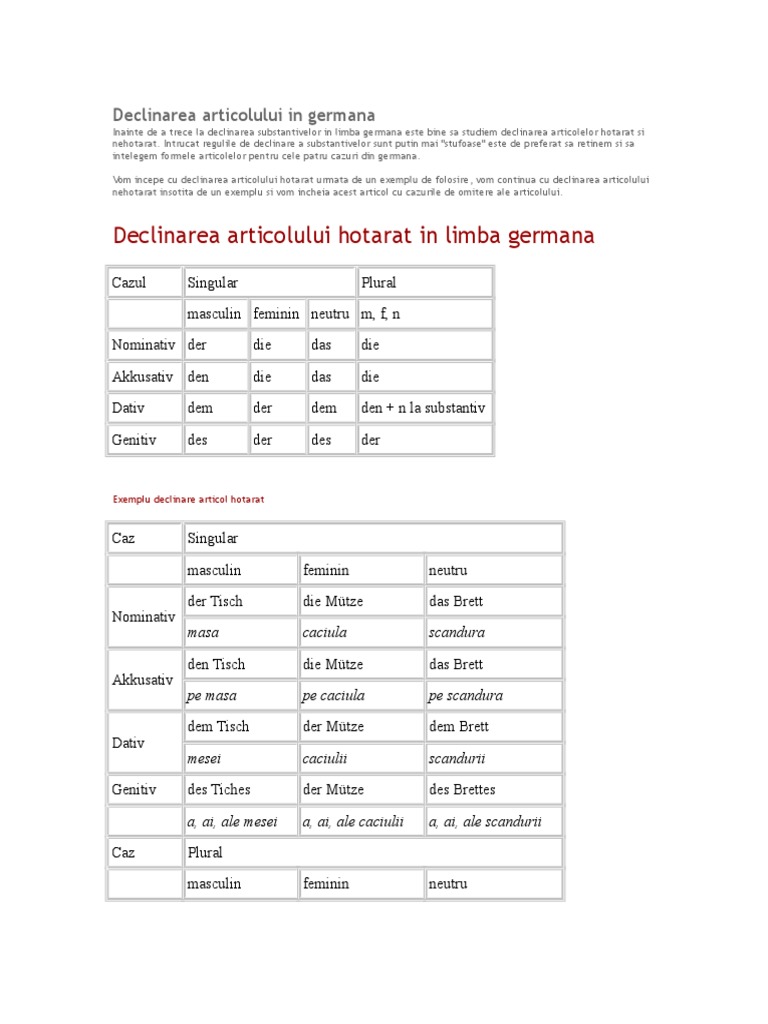 Gramatica, articole the si a. Articolul este o parte de vorbire care individualizeaza substantivul sau adjectivul. Articolului hotarat in limba cazul germana.