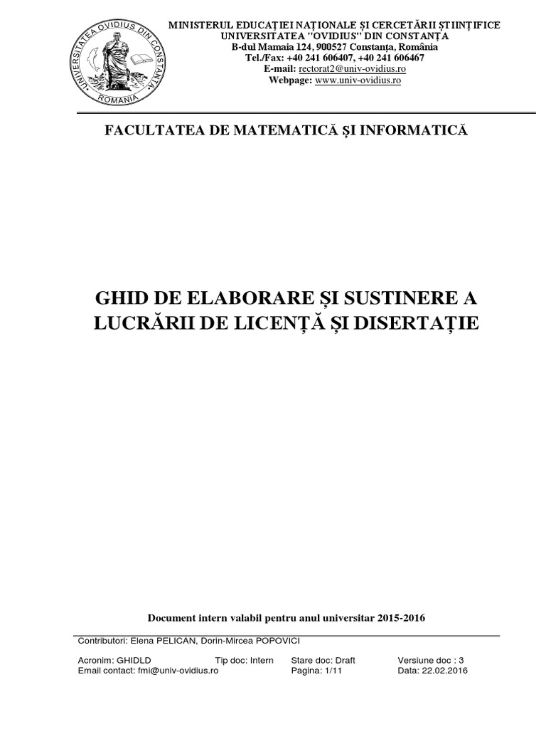 vizitati articolul complet aici : https://www.ziuaconstanta.ro/stiri/invatamant/provocare-adresata-studentilor-si-elevilor-pasionati-de-informatica-659259.html Un obiectiv comun i constant urmrit pe toat durata studiilor universitare l reprezint pregtirea practic de specialitate a studenilor, n vederea formrii competenelor acionale ale profesiunii. Specializari facultatea de matematica si informatica din constanța. Facultatea face parte din cadrul universităţii ovidius constanţa, universitate acreditată cneaa/aracis cu calificativul grad de încredere facultatea de matematică şi informatică asigură formarea continuă a profesorilor de matematică (cursuri si examene de definitivat, gradul ii si gradul.